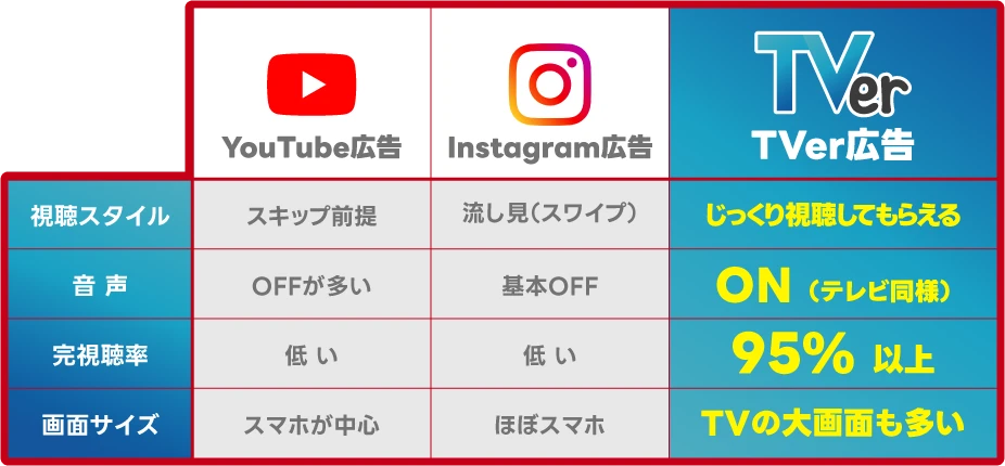 TVerなら大画面、音声ONで最後まで見てもらいやすい!